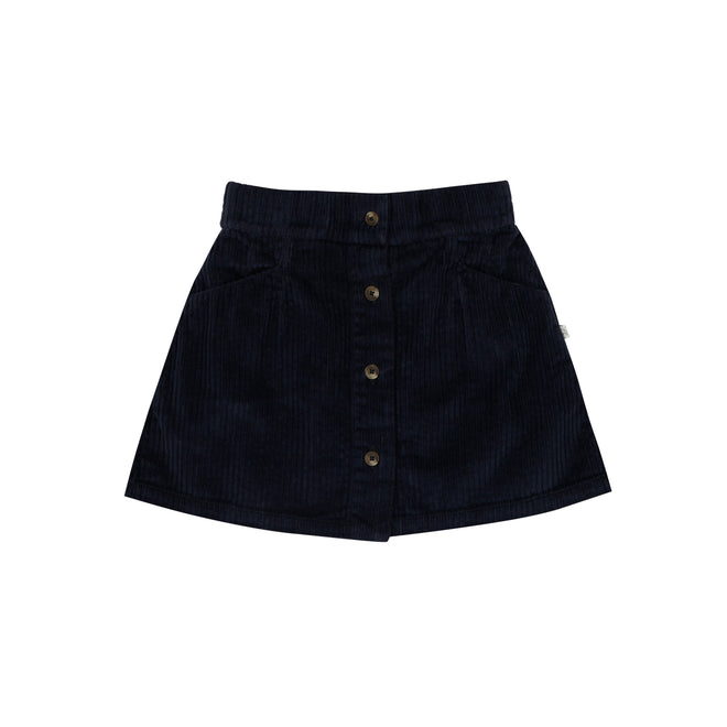 Product description This super soft corduroy skirt has an elasticated waitband, front insert pockets and closure at front - Elasticated waistband Front insert pocket Closure with buttons at Centre front 100% Organic Cotton