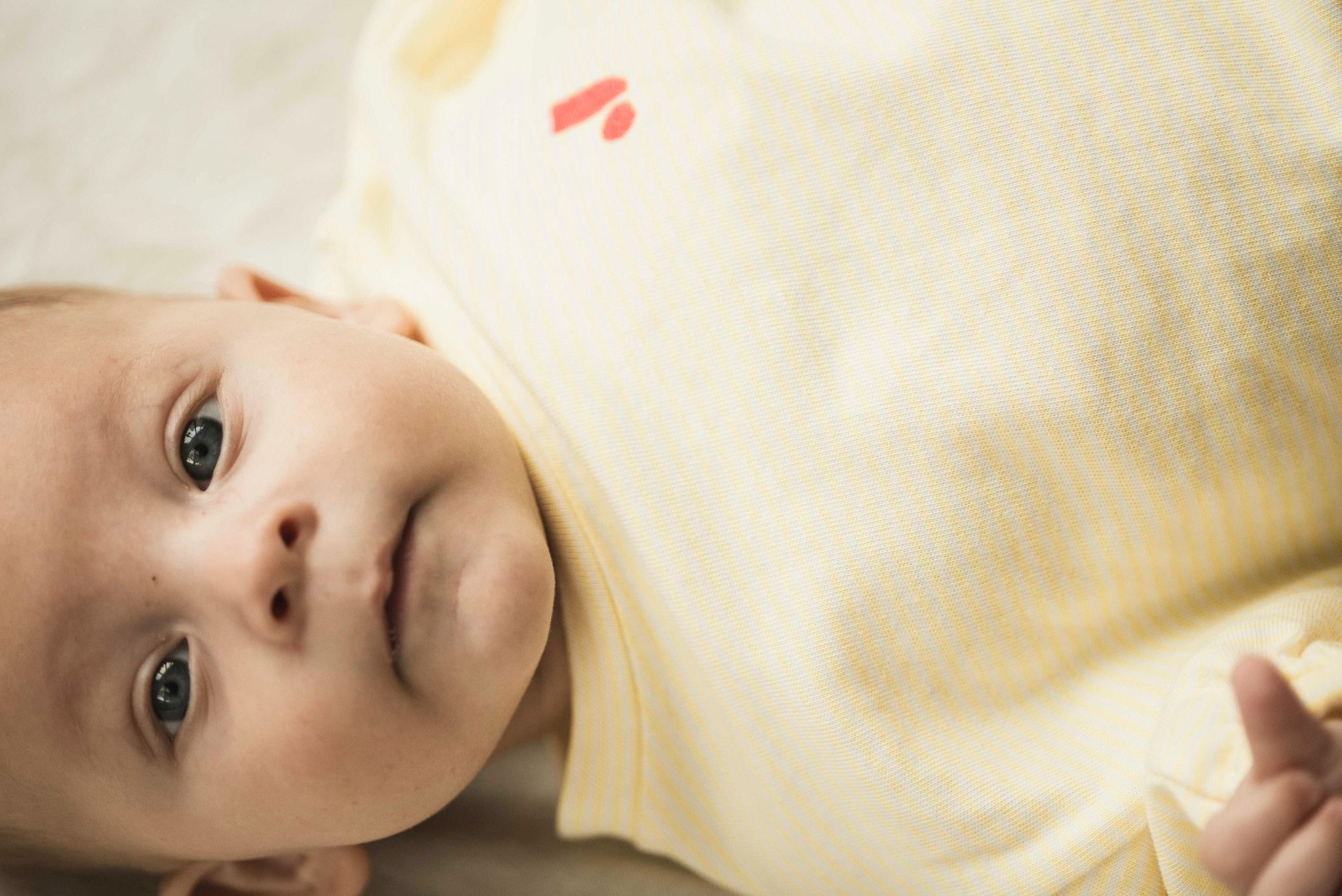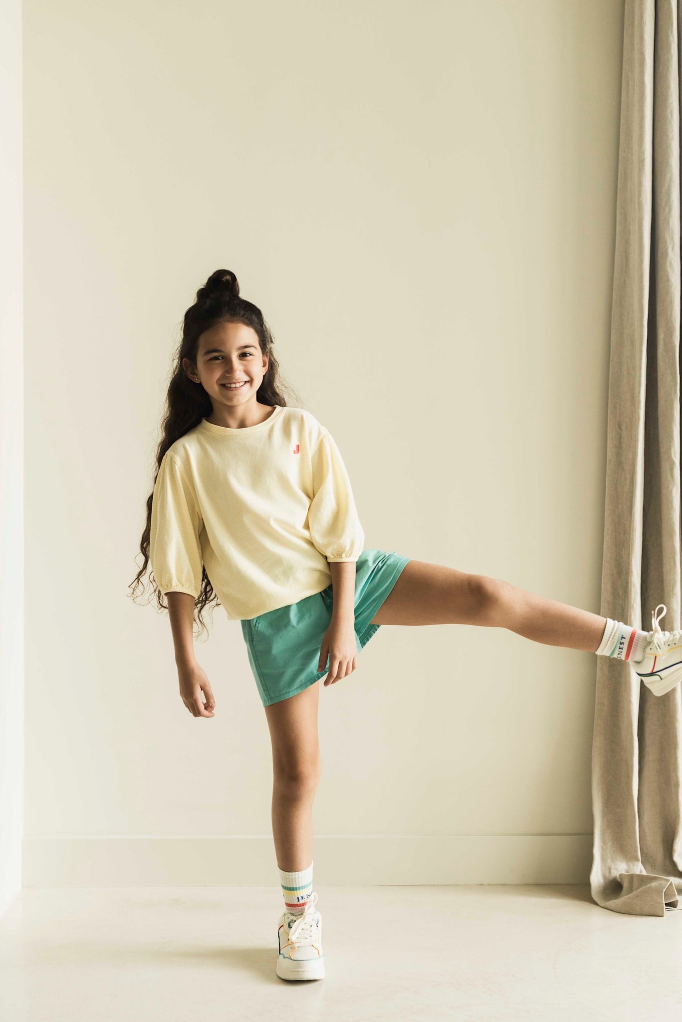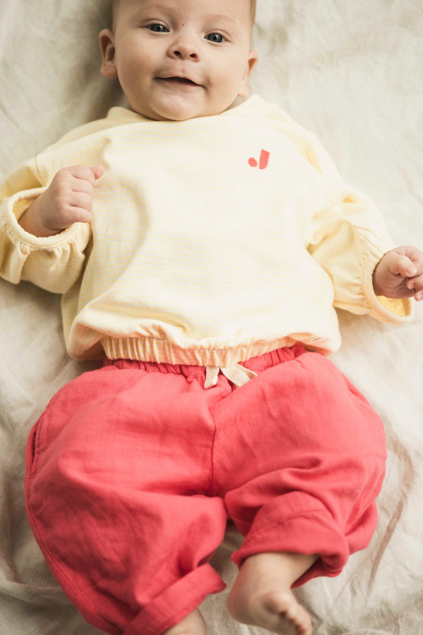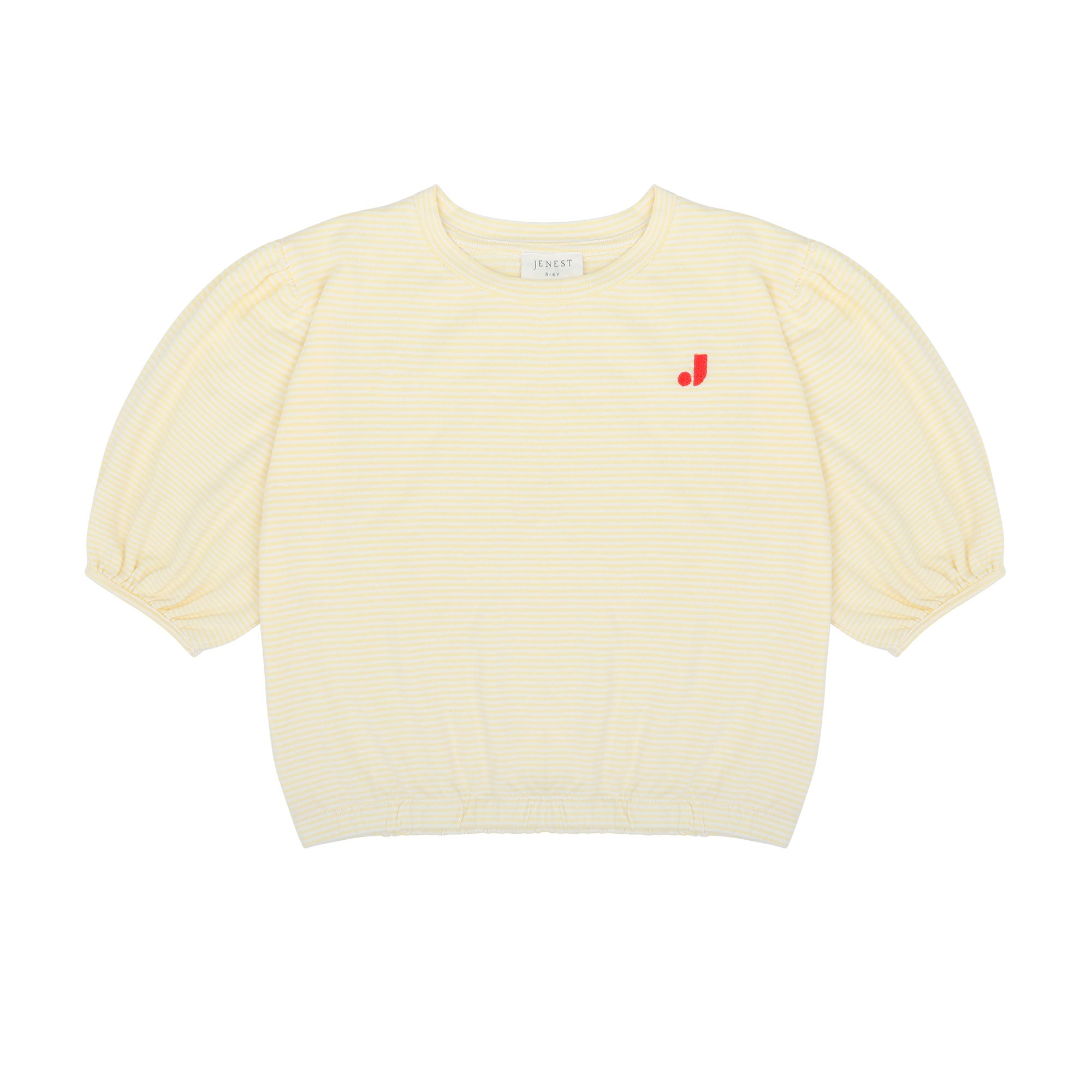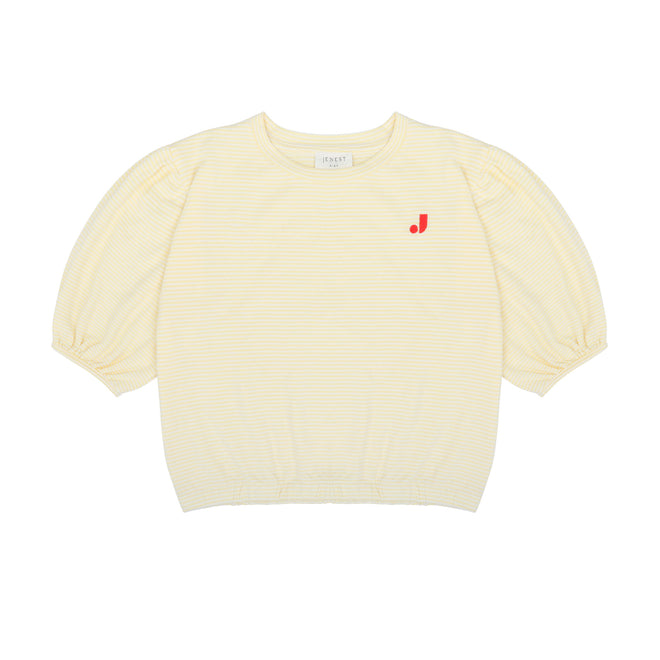 This 3/4 sleeve oversized t-shirt with stripes and elasticated bottom hem and sleeve endings is made from soft organic cotton.