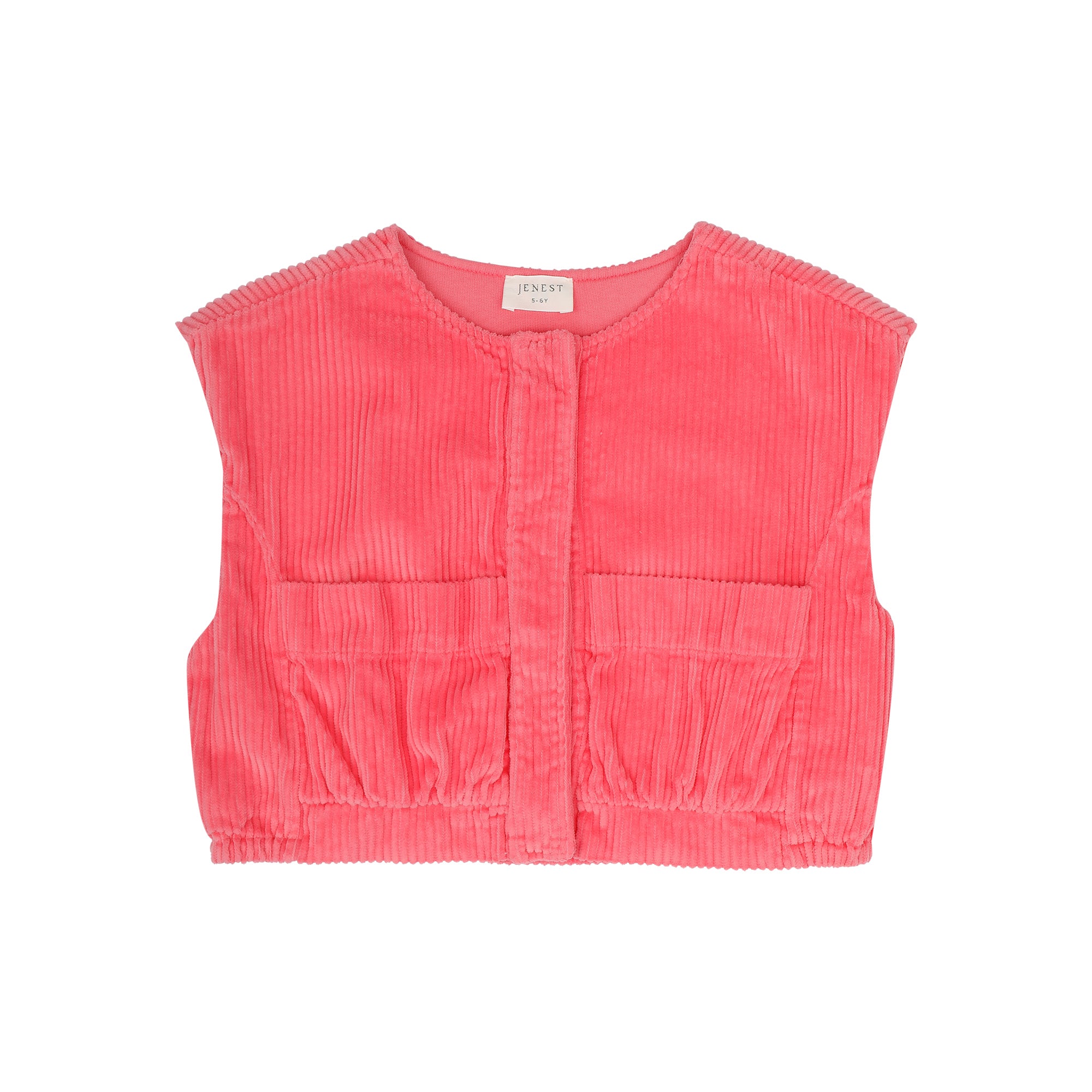 This Gilet is made of a super soft corduroy and is lined with fleece, it has pockets and the front placket carries hidden snaps - Hem is elasticated, Cropped fit lined with fleece patched on pockets Centre front closure has hidden snaps Round neckline 100% Organic Cotton