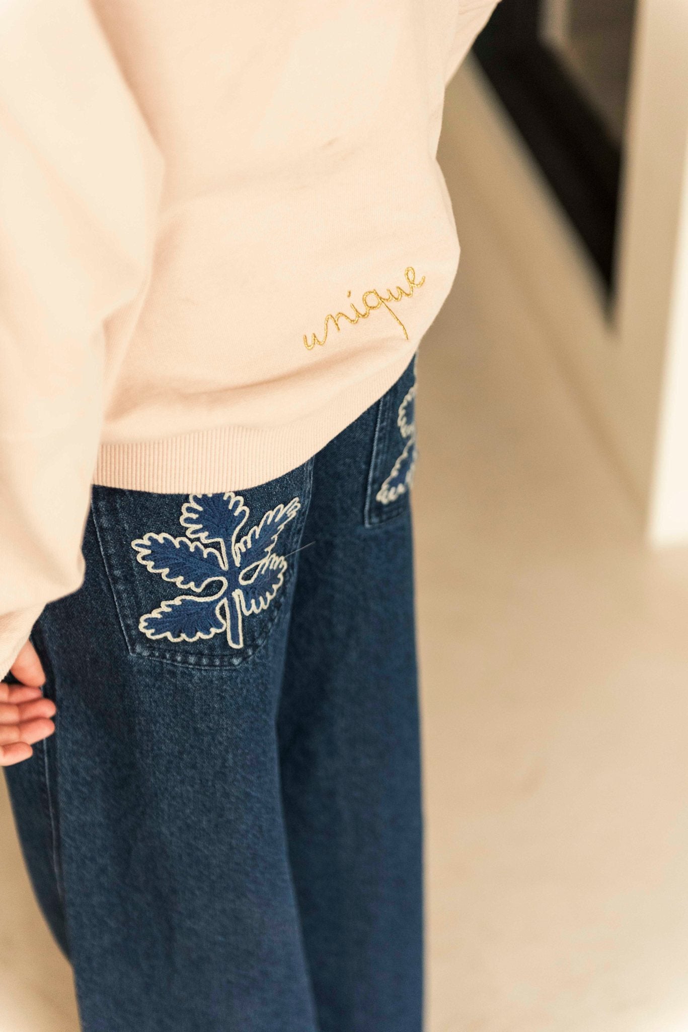 Product description This oversized raglan sleeve sweater with embroidey at bottom back panel - Round collar, Raglan sleeves Oversized fit Embroidery at back 100% Organic cotton